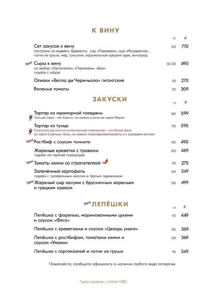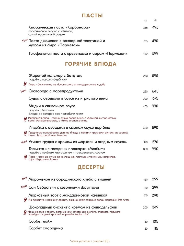 МЕНЮ ИДЕАЛЬНО ПОДОБРАНО К ВИНУ