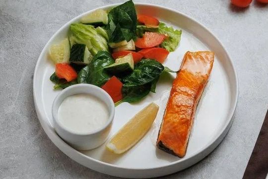 Тост из бородинского хлеба, яйцо всмятку/скрэмбл, лосось слабосоленый, авокадо, соус "Фета", шпинат